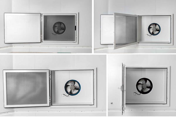5、保溫密封窗與防蟲(chóng)防雀網(wǎng)可同時(shí)180度開(kāi)啟,通過(guò)門(mén)吸固定在墻面上。