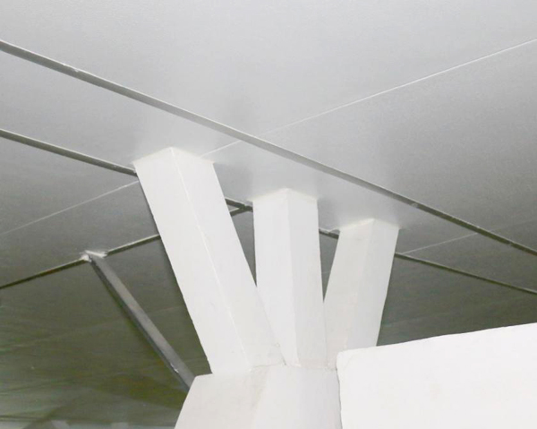 安裝工藝:折線(xiàn)型屋架高大平房倉(cāng)不包梁提升型吊頂